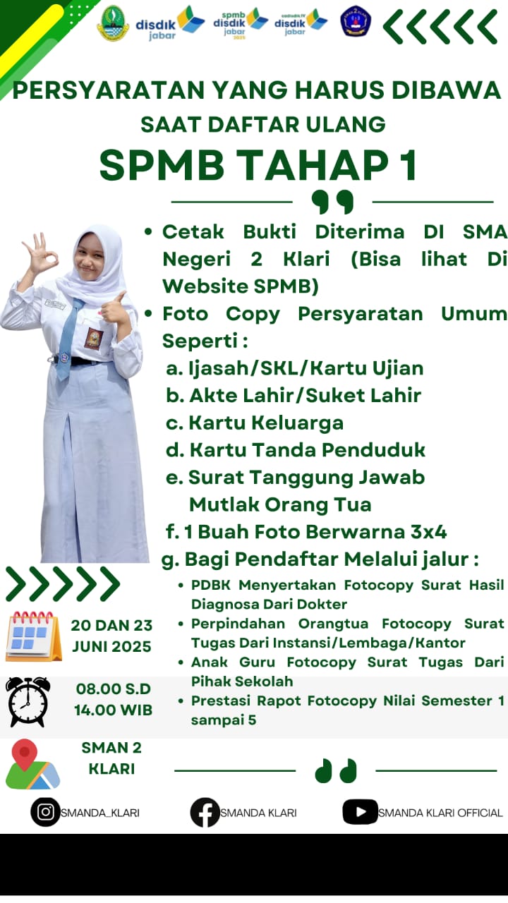 Previous slide Next slide Pengumuman Tahap 1 Link Website SPMB Provinsi Jawa Barat Persyaratan Daftar Ulang